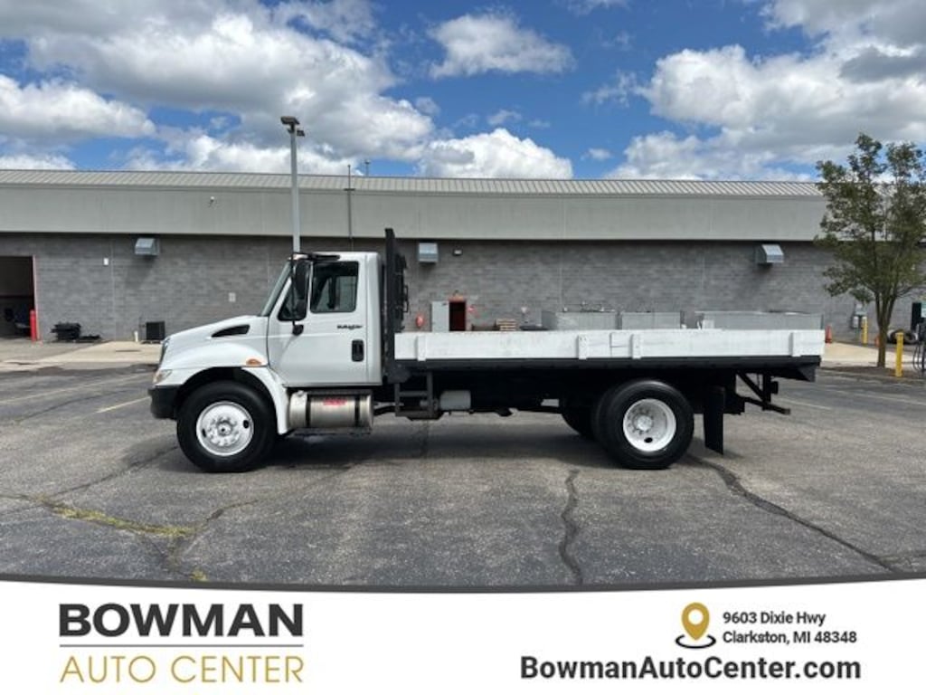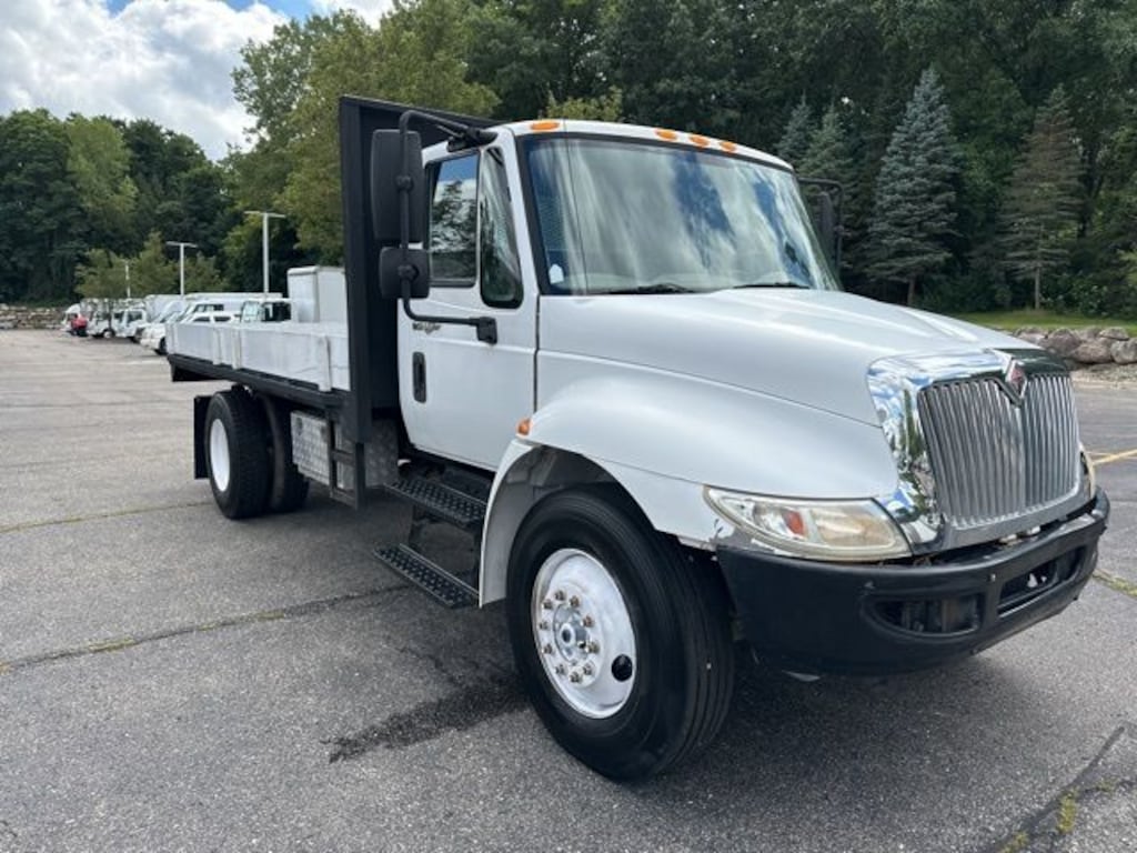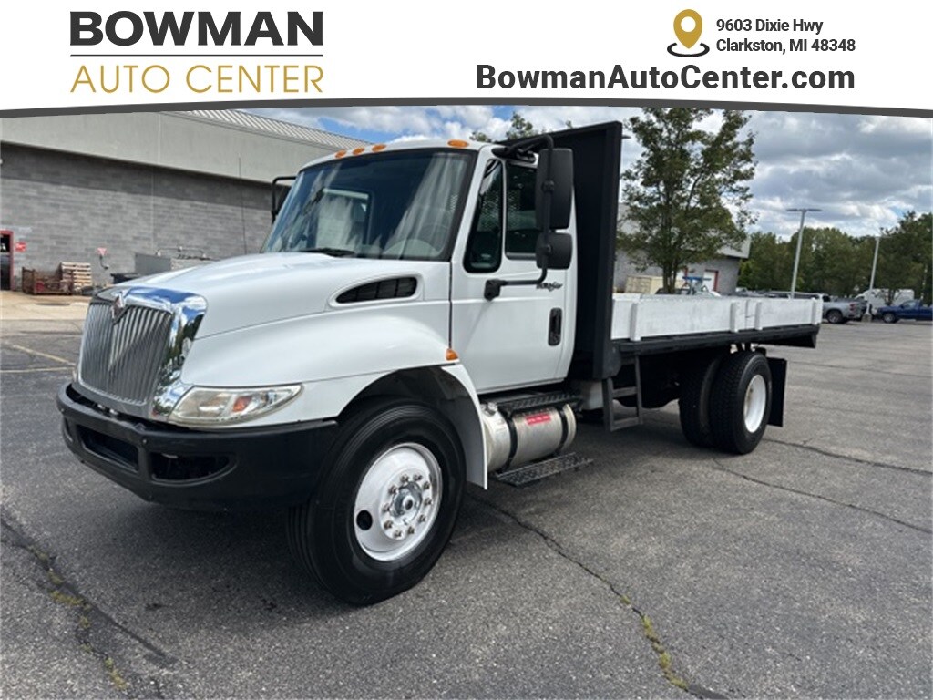 white 2013 International 4000 4300 FLATBED DUMP Automatic